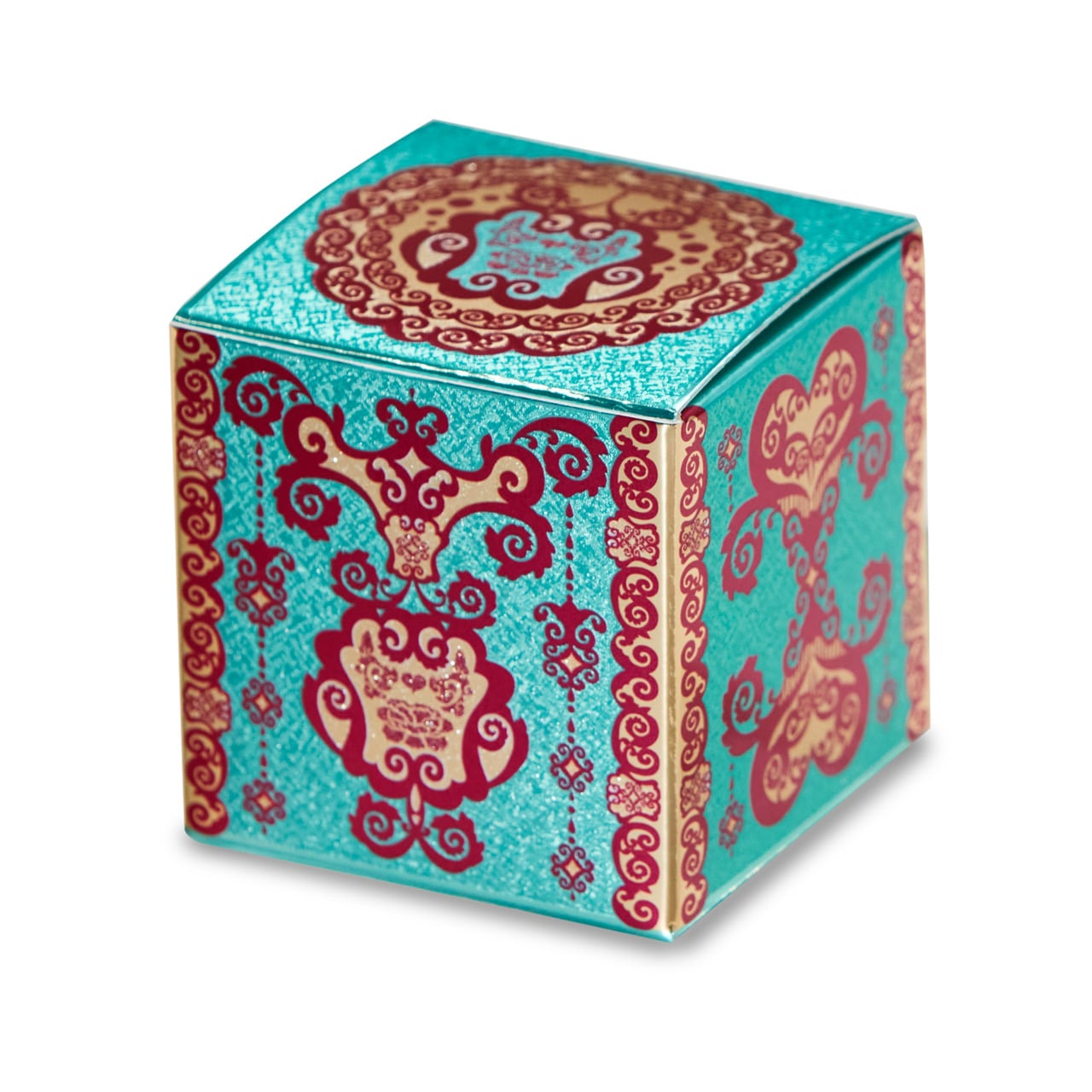 豪華絢爛印刷の小さい紙箱<すこし緑がかった青>×6個セット