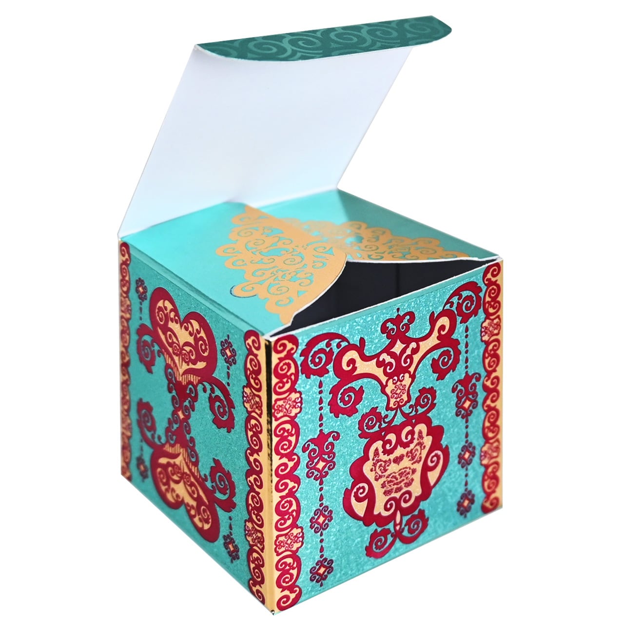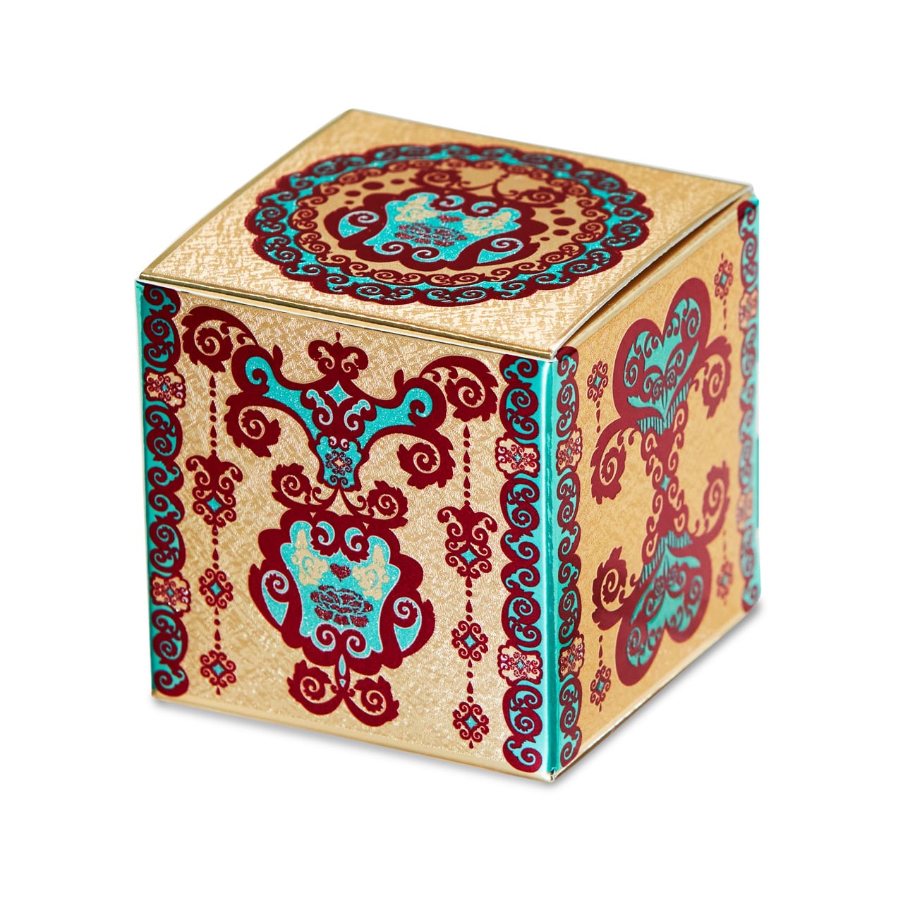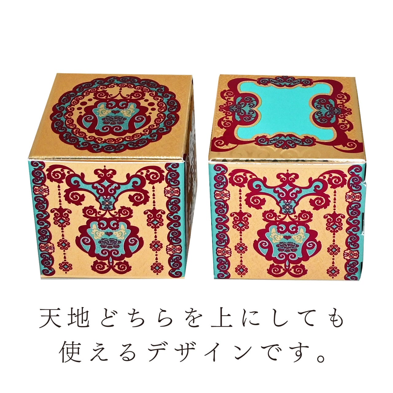 豪華絢爛印刷の小さい紙箱<金>・<すこし緑がかった青>2種×各3個 (合計6個)セット